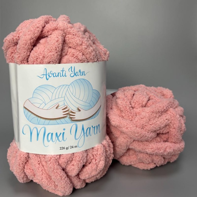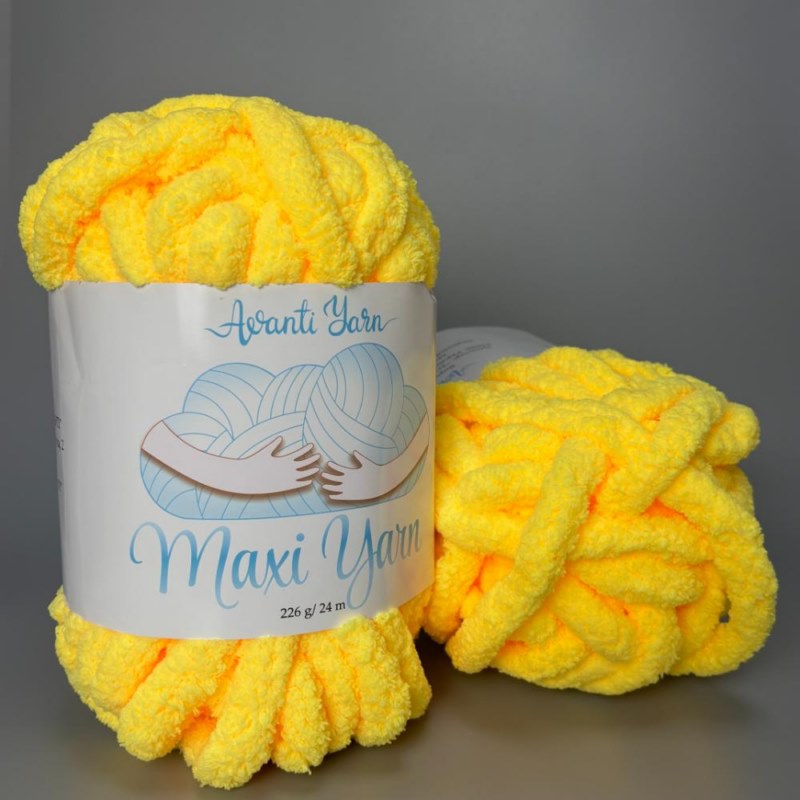 Пряжа є м’яким поліестеровим шнуром діаметром приблизно 2 см. Один моток вагою 226 грам має 24 метри нитки, це дозволяє швидко створювати великі вироби. Якщо вам сподобалася пряжа і ви хочете купити Максі Ярн – вона ідеально підійде для в’язання об’ємних покривал, пледів, подушок, килимків або прикрас для дому. Об’ємні вироби з цієї пряжі підкреслять стильність та сучасність вашого інтер’єру.