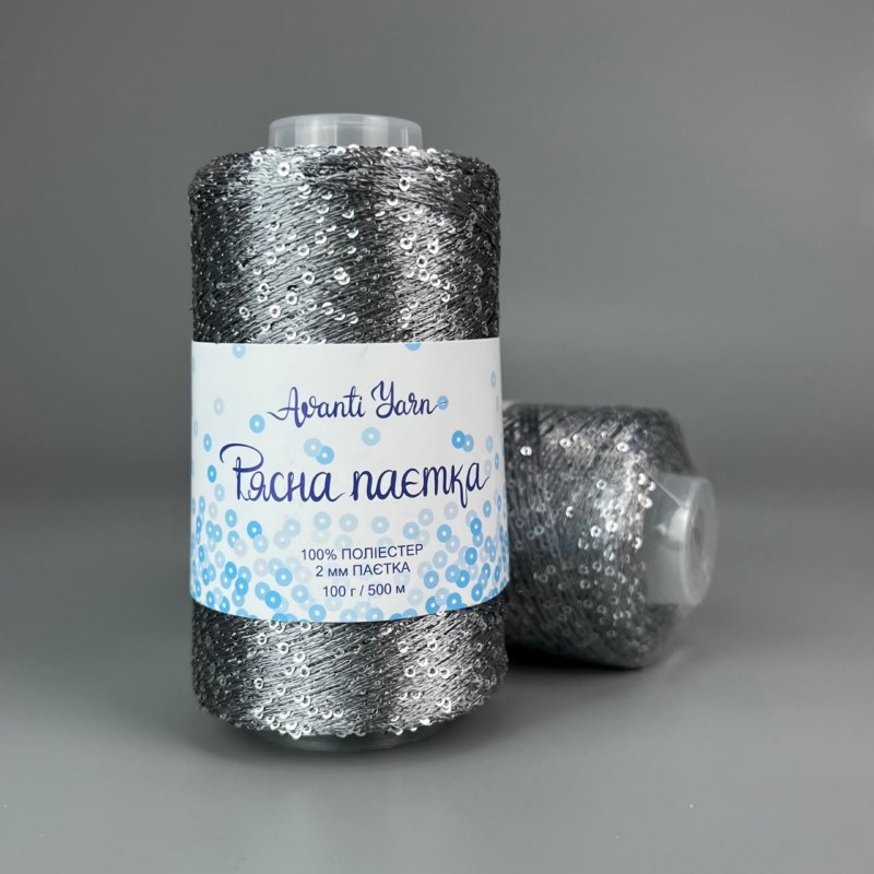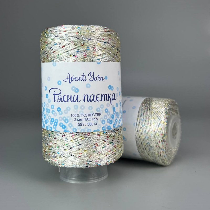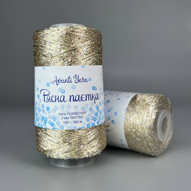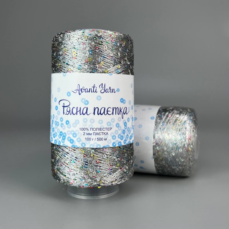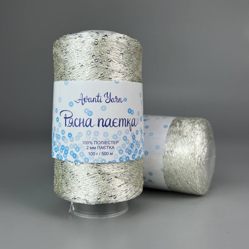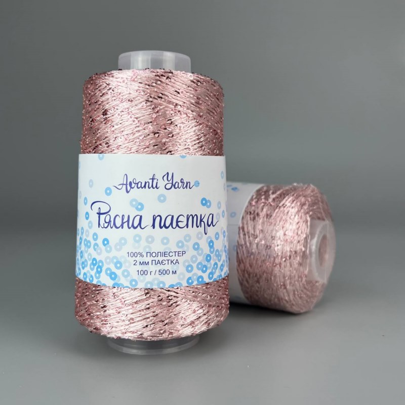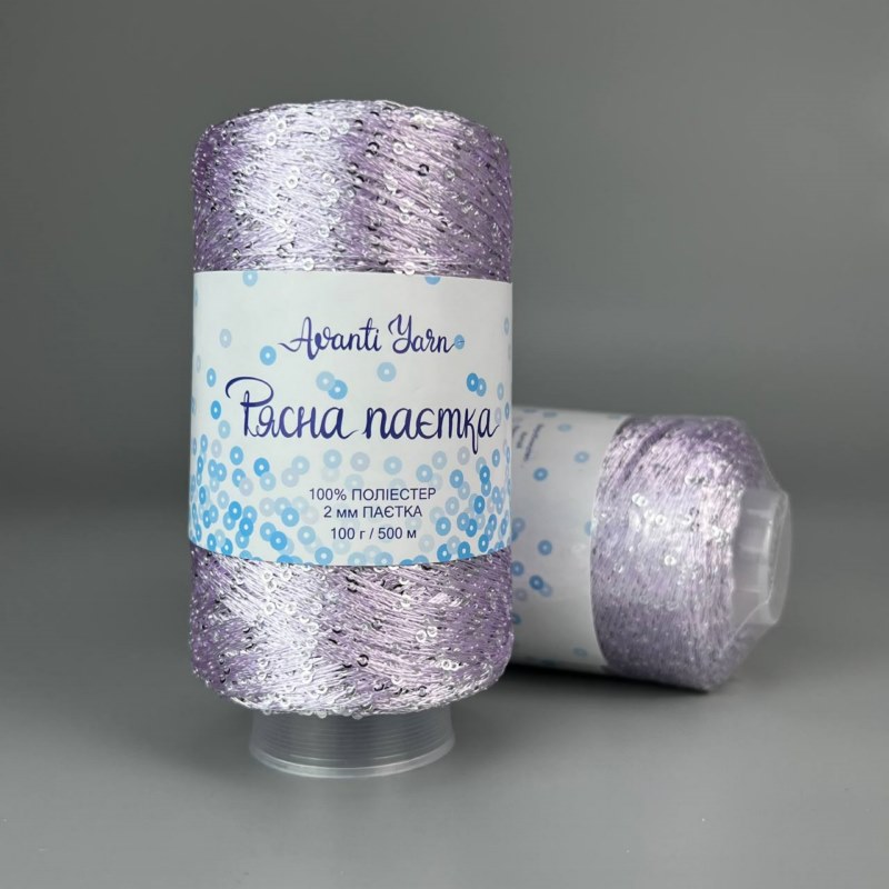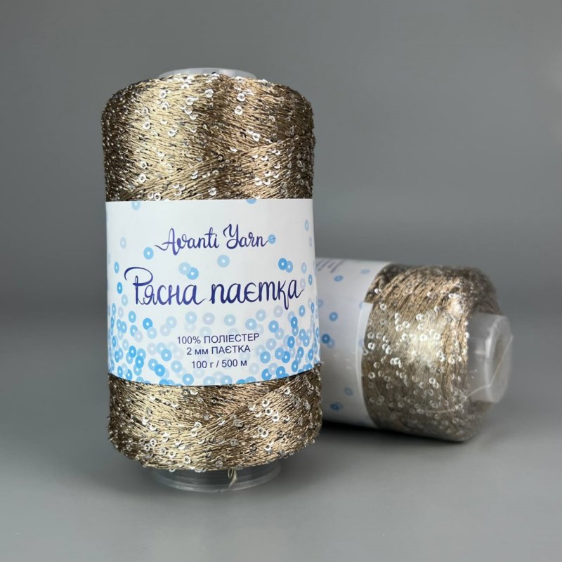 Пряжа Avanti Yarn «Рясна паєтка» – нежная декоративная нить с мягким блеском и мелкими пайетками 2 мм, создающими изысканное мерцание. Легкая, тонкая и прочная, она идеально подходит для праздничных изделий, а также отлично работает как дополнительная нить — придает любой базовой пряже эффектности и особое настроение.