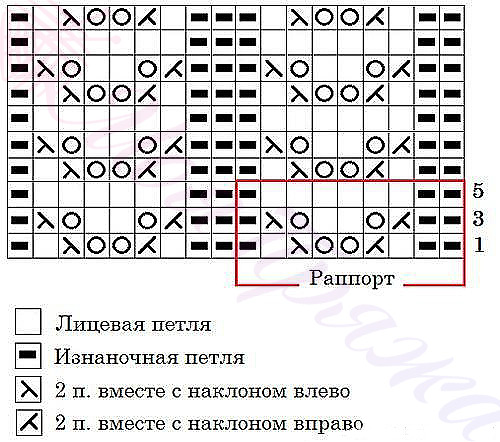- Изнаночные ряды — слева направо (если они присутствуют в схеме).